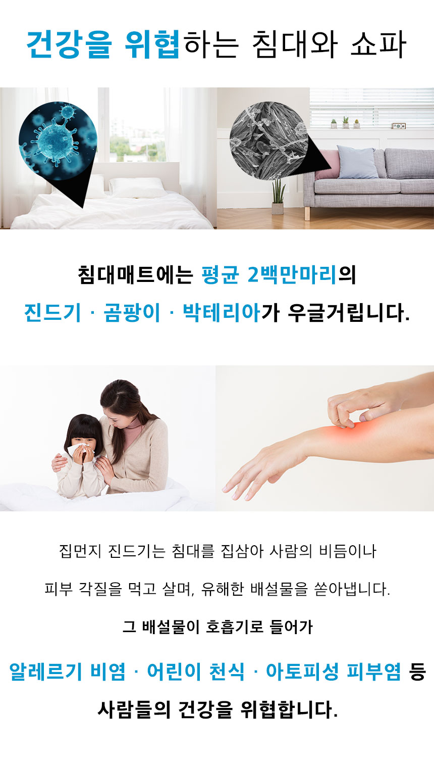그 배설물이 호흡기로 들어가 "알레르기 비염", "어린이 천식", "아토피성 피부염"등